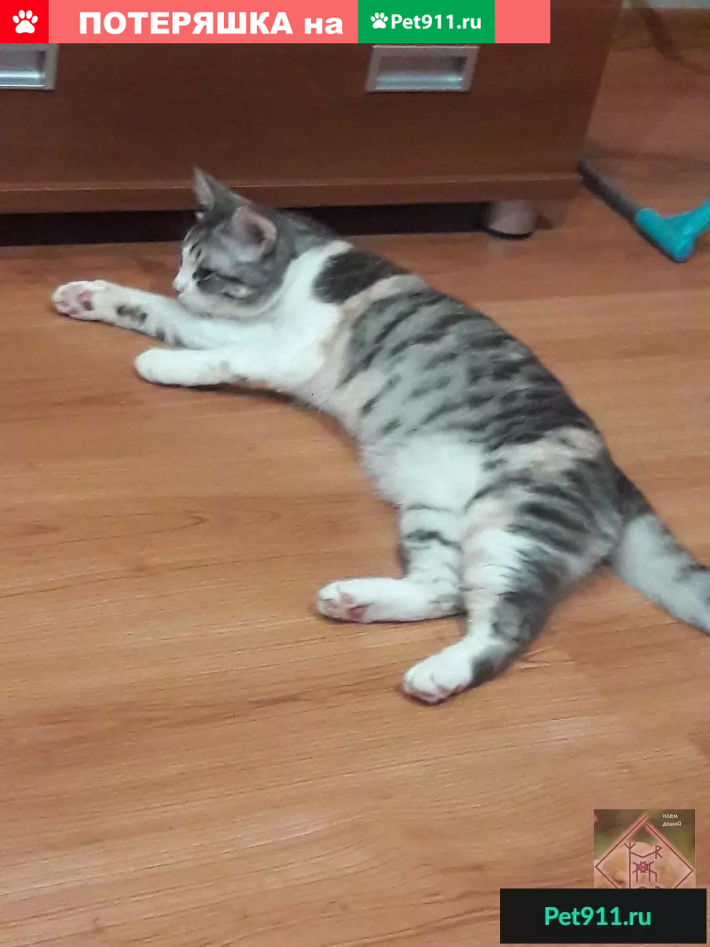 Потерялась кошечка в районе Мильчакова(дом 25-27), домашняя, никогда не была на улице, Особые приметы - на носу есть родимое пятно, одно ухо серое, другое розовое. Выпала с балкона 3 этажа