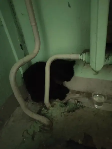 Котенок, мальчик, 3 месяца. Отзывается на кличку Мишаня. На шее серая шерсть, боится людей. Кот спрыгнул со второго этажа, с балкона.(На данный момент выглядит, как на фото в подъезде)
