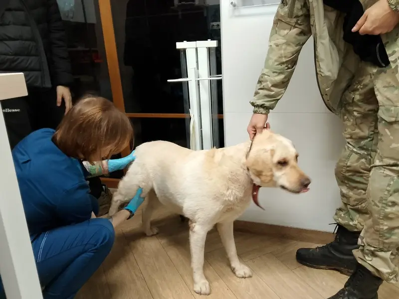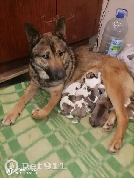 У алабая не правильно купирован хвост (короткий) на лапах пятые пальцы, дворняжка под глазом шрам стерилизованна. Оторвали цепь и убежали.