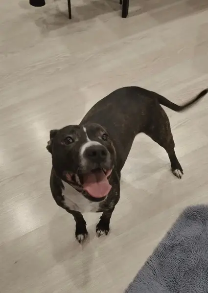 Убежала собака в районе 37 школы!прошу сообщить если увидите!кличка Саймон Стафф Гайва Помогите вернуть нашего
