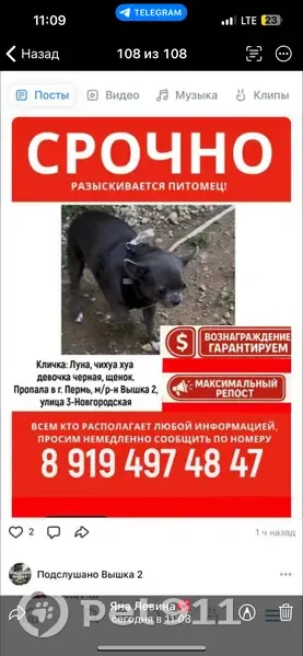 Потерянные животные Пермский край, фото: Собака пропала, Вышка2, Искорская 10
