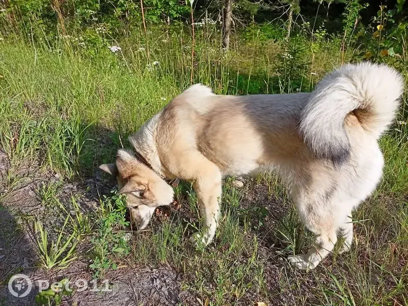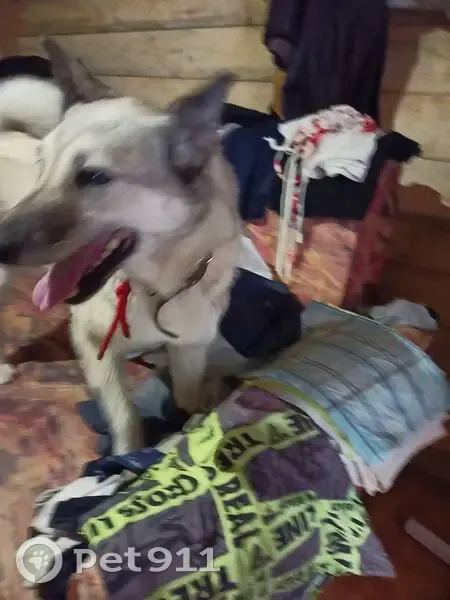 Нашла собаку, похожая на лайку, на трассе Усольский район, деревня Пешково, массив Пешково. На собаке брезентовый ошейник и красная верёвочка. Уважаемые волонтёры, помогите найти хозяев.
