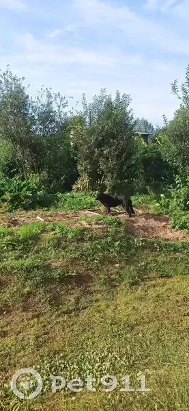 Полностью чёрная, только на передней лапе белый носок, подошла сама, очевидно очень добрая, не злобная ухоженная, следов ошейника не заметно может быть содержалась в вольере, жаль будет если не отзовётся старый, или не найдется новый хозяин пропадёт молодая здоровая собака, жаль не живут здесь постоянно, оставил бы себе...