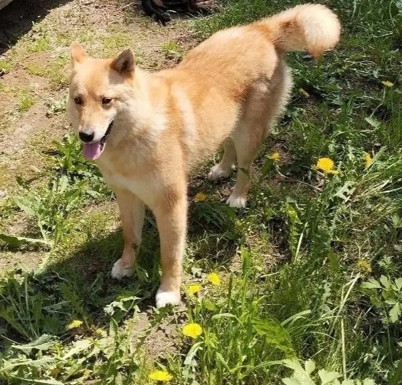 Лайка. Рыже-бежевая. Молодая. Худая. Похоже на волчонка;) Добрая, ласковая. Правое ухо немного разорвано.