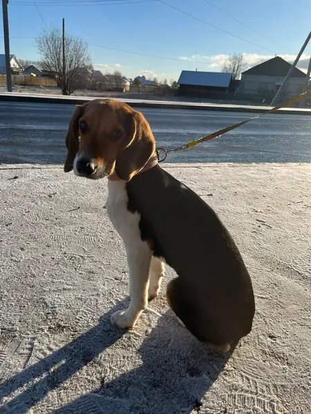 Найден кобель русской гончей. Возраст 1 год. Отдам хозяину. 8 908 27 39493.