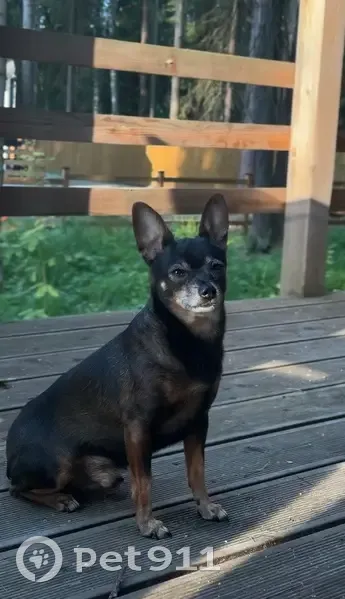 Тойтерьер Рекс. Черный с рыжим. 8 лет, не кастрирован. Седая мордочка, хвост купирован, нет зубов. Находился на базе отдыха «Уральская вотчина», в 19.30 вышел погулять и пропал. Возможно испугался выстрелов охотников в лесу. Очень привязан к хозяину, никогда не сбегает далеко.
