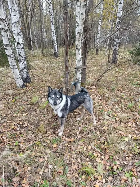 Порода Лайка , слушается команды . Около часа лаяла в лесу , видимо на зверя , пока мы собирали грибы, когда начали поиски лай прекратился , приезжали второй день на это место , Даны не было