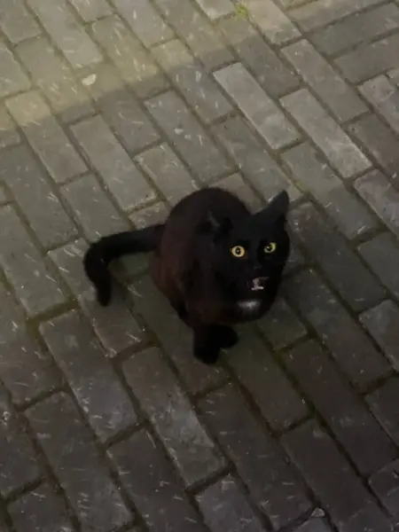 Кличка Ксюша, возраст 1 год, вся черная с белым пятнышком на груди, худая.