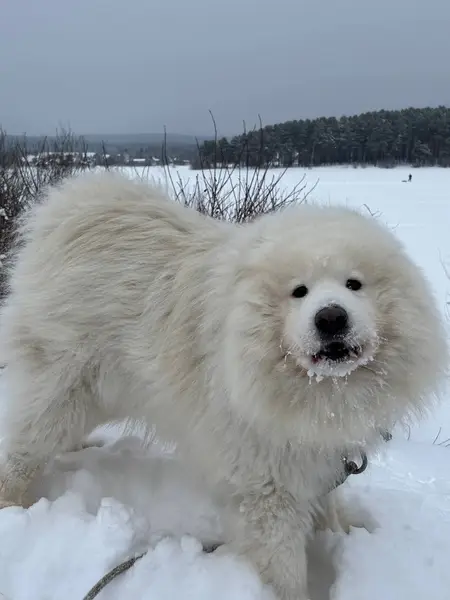Найден пес, порода самоед с синим ошейником на улице вайнера. Хозяин найдись, ваш пес очень скучает
