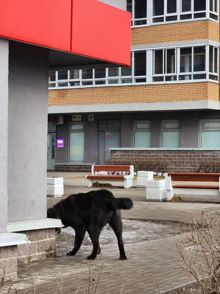 Испугался салюта и убежал.Черный с белыми лапками и кончиком хвоста. Красный ошейник.