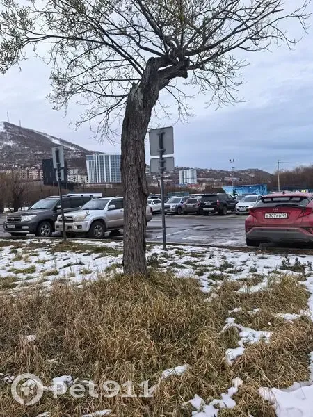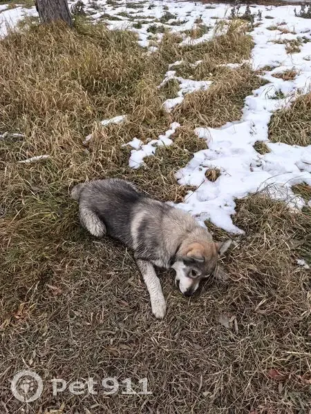 Окрас как на фото. Надет тряпичный ошейник цвета хаки. Собака выглядела здоровой, активно грызла кость. Если по фото кажется, что с собакой что-то не так, то нет, она просто с увлечением грызёт кость. Время обнаружения 16.55.