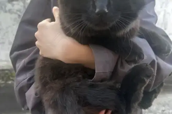 Пропала кошка на ул. Владивостокская 17, сибирская порода, чёрная с белым пятном на шее.