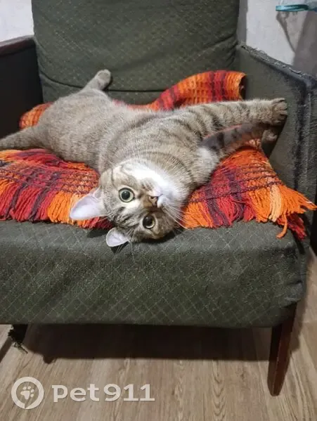 Небольшая кошечка, окрас тёмно-рыжий с коричневыми полосками, глаза зелёные. Особые приметы - шрам от стерилизации. В ночь с 22 на 23 августа выпала из окна 4 этажа, возможно, ранена, но крови на земле не было.