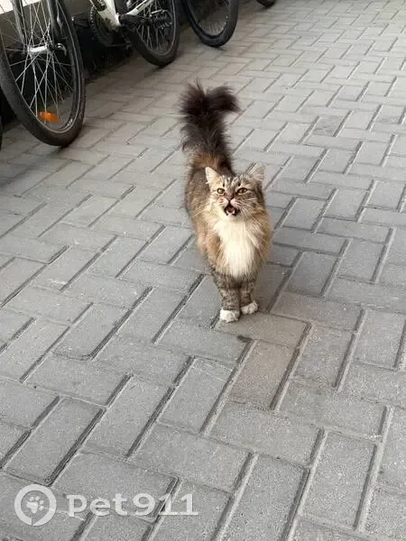 Добрый день! Сегодня нашли кошку на улице Лыжной, кошка очень ласковая, очень похожа на домашнюю к себе не можем взять пришлось напоить и покормить на улице