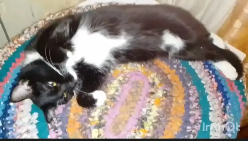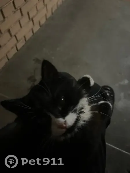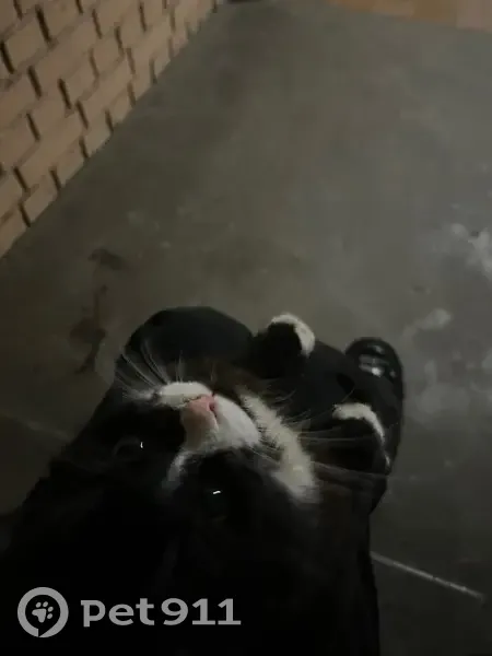 кошка черная с беленькой мордочкой, беленькие лапки, беленькая шея немного и на левой задней лапе белое пятнышко побольше на половинку лапки, кошечка очень ласковая игривая
