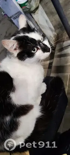 Чёрно-белый кот найден у магазина магнит ,дрожал от холода и плакал ,видно домашний ,но тощий .Взяли домой но дома есть питомцы которые его не принимают ,к лотку приучен сразу сходил ,кушает все подряд ,ласковый очень