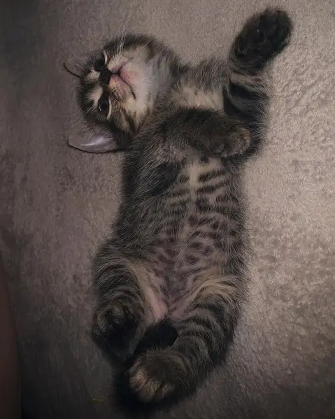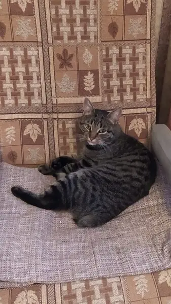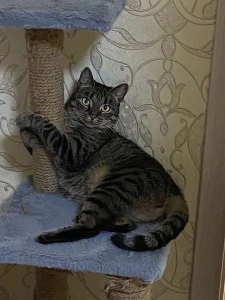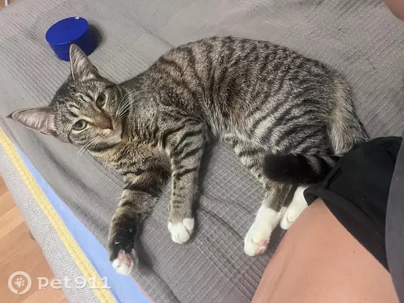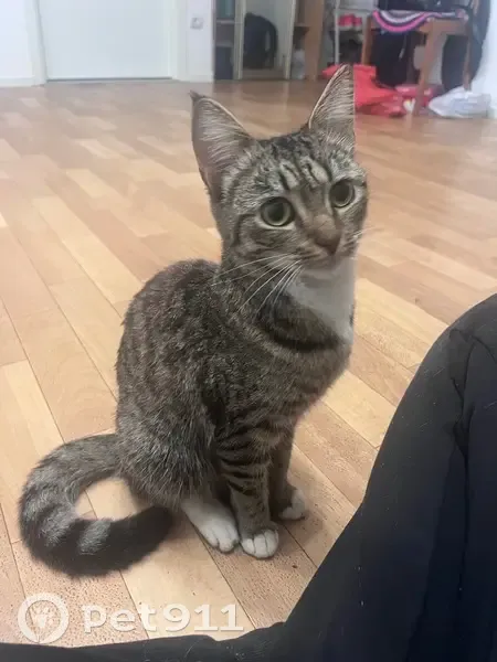 Маленькая, ласковая, молоденькая кошечка, полосатый окрас, на грудке белое, и лапки белые. Была очень голодная, все время ест и спит. В латок ходит, нигде ни нагадила. Кто потерял, отзовитесь.