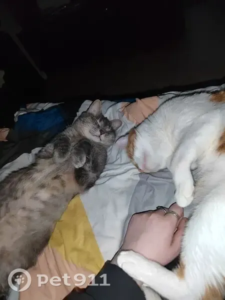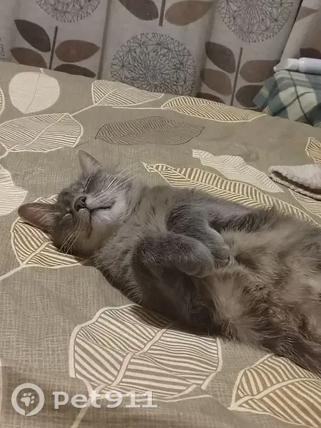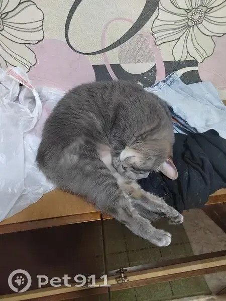 Окрас серый в небольшую полосочку , полосатое полулысое пузико, красивые жёлто-желёные глаза, лапки полосатые, подушечки тёмные, на глазках белые стрелочки, когда ходит пузико висит, она упитанная девочка, хвост длинный, гладкошёрстный, сама немного пушистая