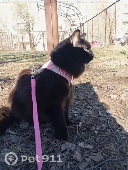 Пушистая чёрная кошка, на солнце коричневый отлив, ласковая, дружелюбная Возможно, что подходит к людям Убежала из квартиры, подъезд в этот момент был открыт