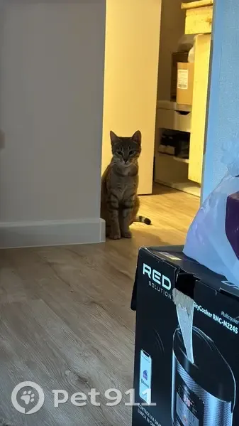 Котик очень худой и пугливый, но в то же время ласковый к людям. Окрас самый обычный полосатый. Вася выпрыгнул с окна 1 этажа, я его искала, но нигде не было.