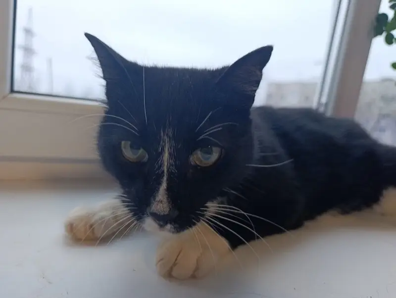 Черно-белая, ласковая. Шерсть гладкая. Немного порвано ухо. Гуляет во дворе на протяжении 3 лет. Вышла и не вернулась. Возможно прыгнула в грузовик КБ. Адрес похожей кошки Маршала Мерецкова 26