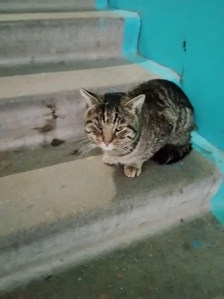 Котик небольшого размера, серый полосатый, кастрирован. Убежал во время прогулки.