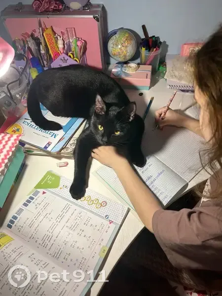 Убежал в парке железнодорожников рядом с домом, окрас полностью черный с шоколадным отливом, есть белые волосики на пузике, нос черные подушечки у лапок розовые, отколот кусочек правого клыка, глаза желто-зеленые, предположительно мог пойти в сторону железнодорожного садика или 14 школы