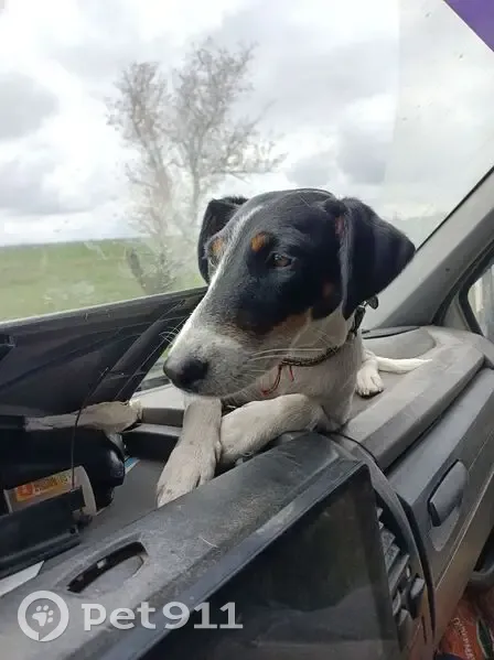 Выбежала на дорогу, машина по касательной стукнула бампером, с перепугу убежала в лес. Брови рыжие, на шее ошейник с цифрами номера владельца. К людям липнет, залижет до дыр