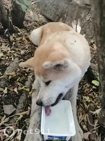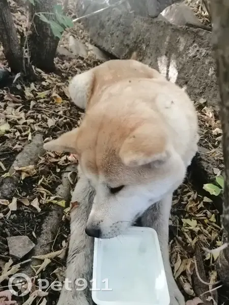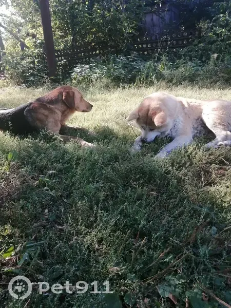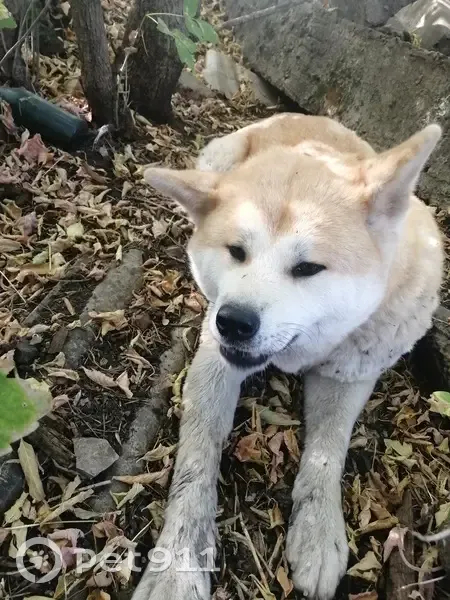 Акита ину, рыжая с белым, 2-3года,девочка.С ней кобель, коричневый с чёрным, охотничий 2-3года.Прибились к дому. Кобель худой, Акита нормальная. Подходят, можно погладить, едят, что даю