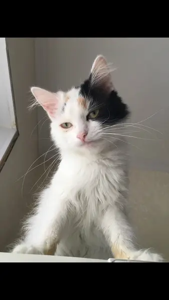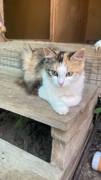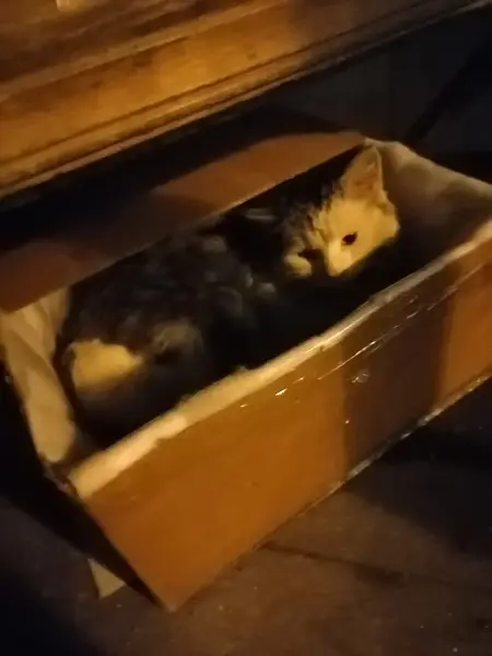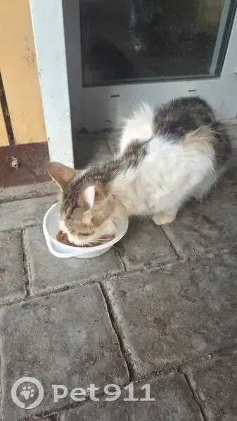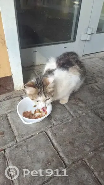 Возле ТЦ Люкс в Кутузово сидит кошечка, добрая, к людям идёт без страха. Её подкармливают, но холода становятся сильнее, ей найти бы дом. Видно, что малышка была домашней.