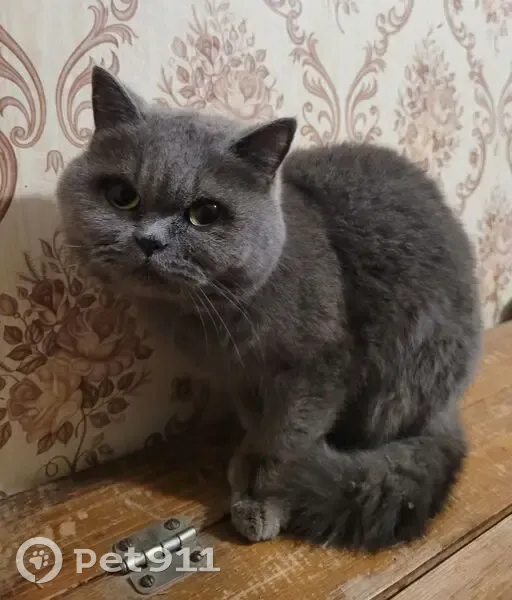 Небольшая кошка (внешне больше похожа на кошку, чем на кота, но это не точно), серого окраса, выглядит как британская или шотландская прямоухая порода. Найдена на помойке. Была очень напугана, явно была домашняя, знает лоток.