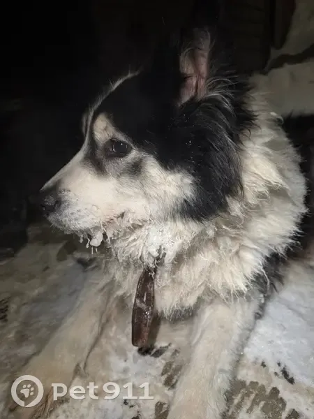 Черно-белая девочка, спокойная собака, много колтунов, была на шлейке. Шлейка либо старая, либо собака на ней уже давно. Никакой информации на шлейке нет.