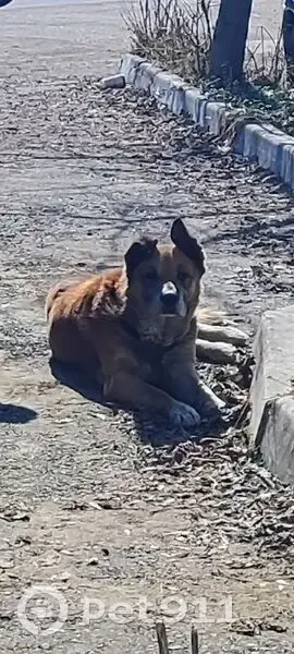 Коричневый окрас с ошейником. По ночам бегает в нашем квартале и скулит уже примерно 2 недели.