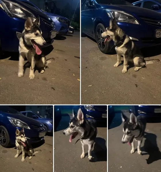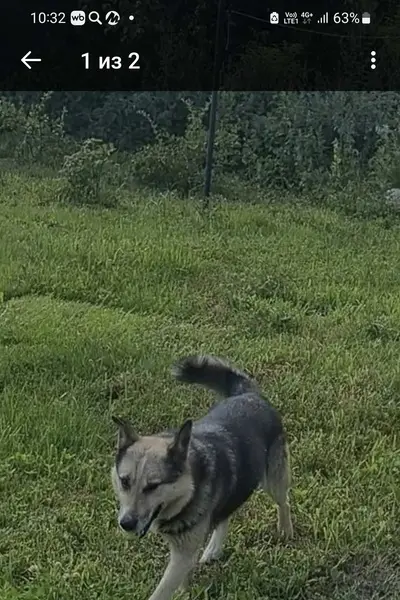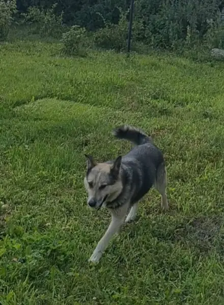 Найдена собака. Подольский городской округ, деревня Яковлево. Метис мальчик, возраст около года. Очень ласковый. На шее следы от ошейника. Возможно сорвался с цепи.