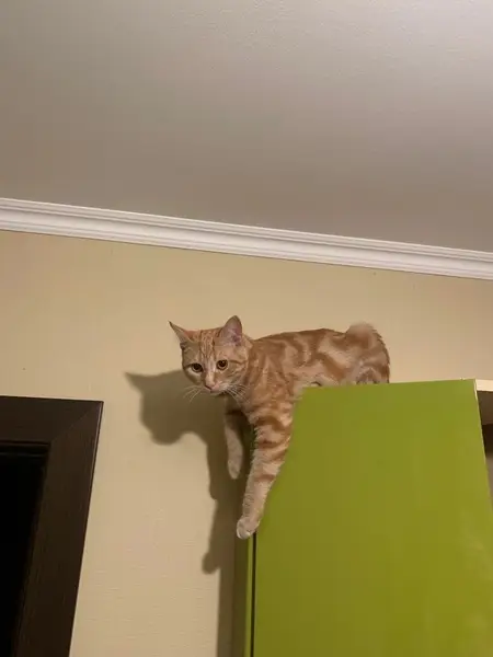 У Персика разные губы если приглядеться.Одна больше.Если голову запрокинуть,то видно,что у него нет кусочка губы.Когда был котенок его на улице собака покусала. Пропал-выпрыгнул с балкона.Мы сразу вышли,но он убежал.
