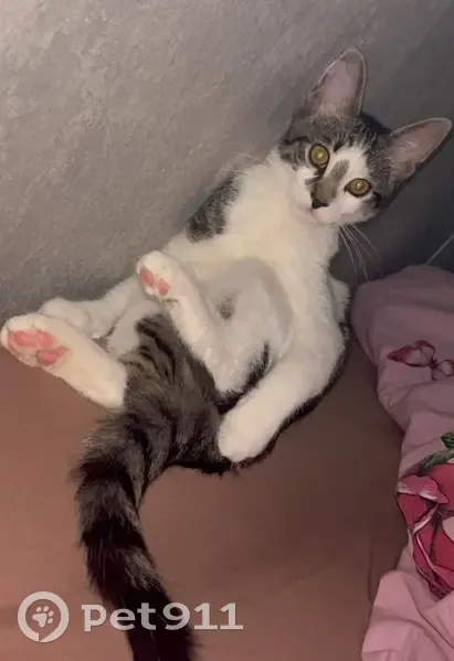 Окрас серый, белая грудка и лапки, яркое пятно на носу, коричневые глаза. В меру упитанный, не кастрирован. На имя отзывается, но пугливый. Выпал с балкона в 9:50 утра, ушел в неизвестном направлении, может быть где угодно.