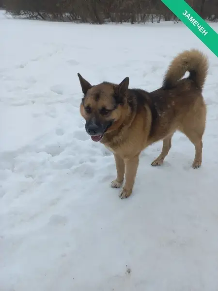Метис овчарки с лайкой, 9 лет, кобель. На спине может появляться узор из шерсти, она иногда немного стоит. На морде немного седины. Хвост то баранкой, то как у овчарки. Был в ошейники (цепь). Убежал ночью 24 сентября в районе улицы 43 Армия. Не боится машин. К людям не труслив. Город Подольск. Гуляли в микрорайоне Фетищево, на поле за церковью. Живём на улице 43 Армия, дом 23А, кв 222.