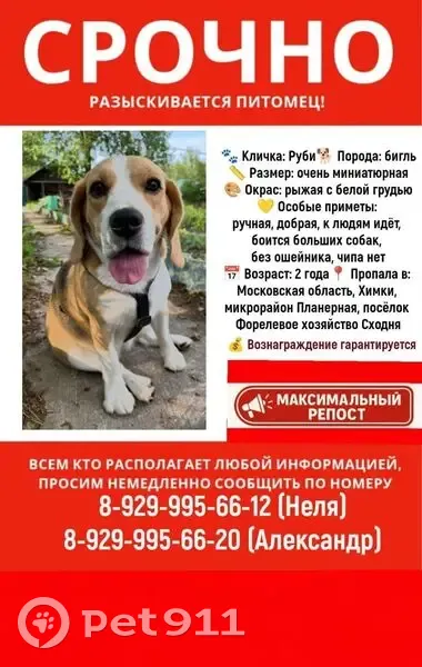 Потерянные животные Москва, фото: Пропала собака Руби, Лесная ул., Москва