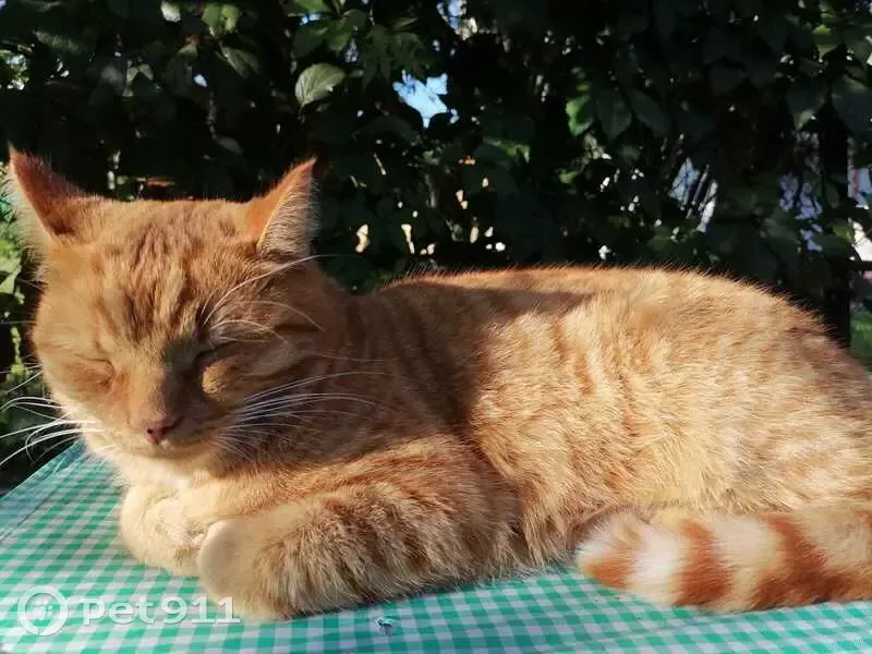 Рыжий с пятнами , с черным ошейником, черная точка на носу)доверчивый к людям котик. После Москвы хорошо освоился в деревне) но вот 21.10. Не пришел домой...