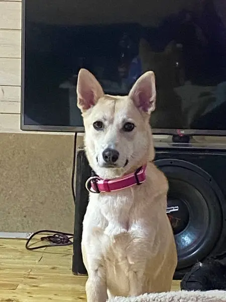 Друзья! 5 мая у нас пропала собака по кличке Джесси. Пропала в районе улицы Заречная г. Покров и новые прилегающие улицы. На собаке ярко розовый ошейник. Нос розовый. Собака очень пугливая, к чужим не подходит.