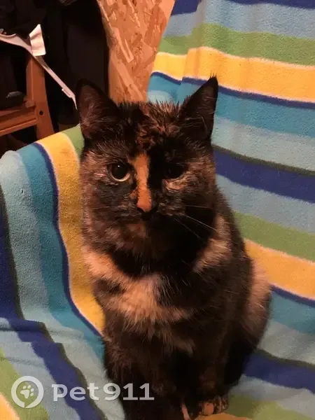 Окрас черепаховый. Кошечка добрая и ласковая, вполне могла к кому-то прибиться. Ушла гулять вечером, но не вернулась, хотя обычно возвращается всегда. Есть чип, все прививки