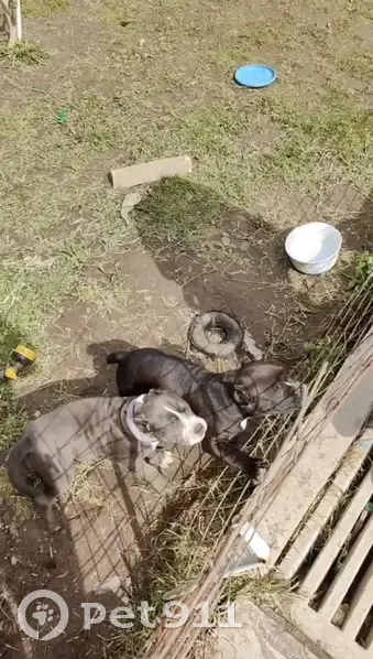 Сегодня удрали с участка, деревня Покровская, 2 щенка . Ам булли 4 месяца. Мальчик черный , купированные уши и хвост, девочка голубая с белой мордой, уши купированы, чипированные