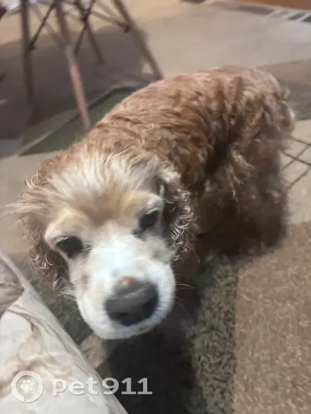 Найдена собака спаниель Взрослая девочка, есть седые волосы, есть проблемы со слухом. Найдена на перекрестке ялунина-ленина, возле пятерочки (ялунина 7) бегала по проезжей части, видно, что потерялась Ищем хозяина, звоните по номеру телефона 89321120233