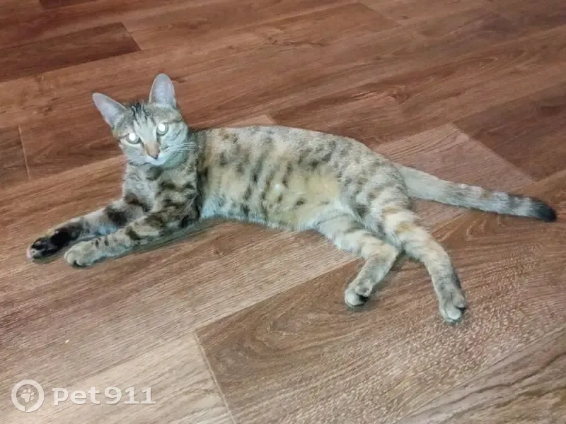 Окрас трехцветная кошка, каре зеленые глаза, худое, немного вытянутое телосложения, любит гулять, раньше пропадала максимум на день-полтора дня, живем в частном секторе, соседи ее не видели в огородах, хотя свое время она проводит в соседских участках с другими котами.