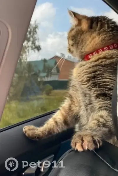 Окрас серый, с рыжиной, кончик хвоста белый, на шее красный ошейник, выскочила из машины на заправке, убежала в лесополосу, все попытки найти её безуспешны, она испугана. Кошечка ласковая, знает людей. Может выйти к людям. Мы ехали проездом, продолжать поиски пытаемся дистанционно, связались с волонтерами, написали в местные группы, обратились за помощью к сотрудникам АЗС, если к кому-то она пришла, пожалуйста, верните её сотрудникам АЗС, или свяжитесь с нами, мы находимся далеко, скоро поедем назад целенаправленно на поиски.
