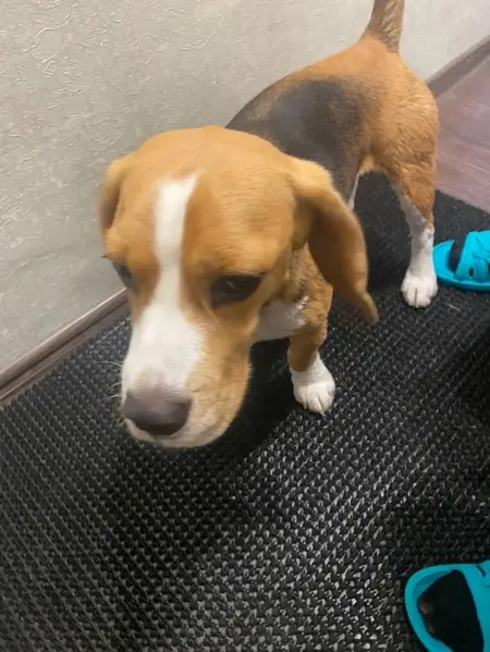 Убежала сегодня в 12:00 с участка д. Порошкино ул. Романтиков. Без ошейника! Есть клеймо! Собака упитанная. Окрас 3х цветный рыжий-белый-чёрный. Ласковая, на кличку отзывается.