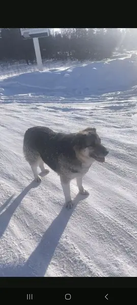 Пёс крупный, толстый, упитанный. На мой взгляд его или кормили много или он жил совсем без движения....При встречи мне показалось что он совсем не знаком с движением дорог, машин сторонится обходит. Хорошо к другим собакам, к девочкам видела. Сторонится мужчин. На мой взгляд ему 3-4 года, активный добрый. Цвет светлый, подпалые места присутствуют. Был без ошейника, но следы от него есть. На фото Дюжонок место где был найден пёс. Билимбай. Недалеко от ЖД переезда, стоял на главной дороге.