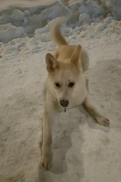 Белый окрас, небольшой шрам правый глаз нижнее веко, отсутствует верхний левый резец