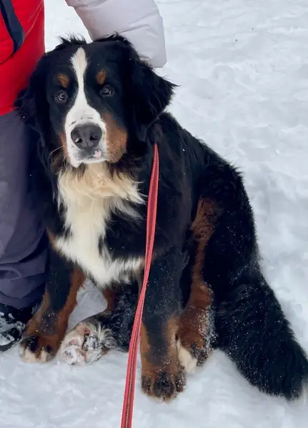 По посёлку Коврово бегает собака,породистая ,Бернский Зенненхунд