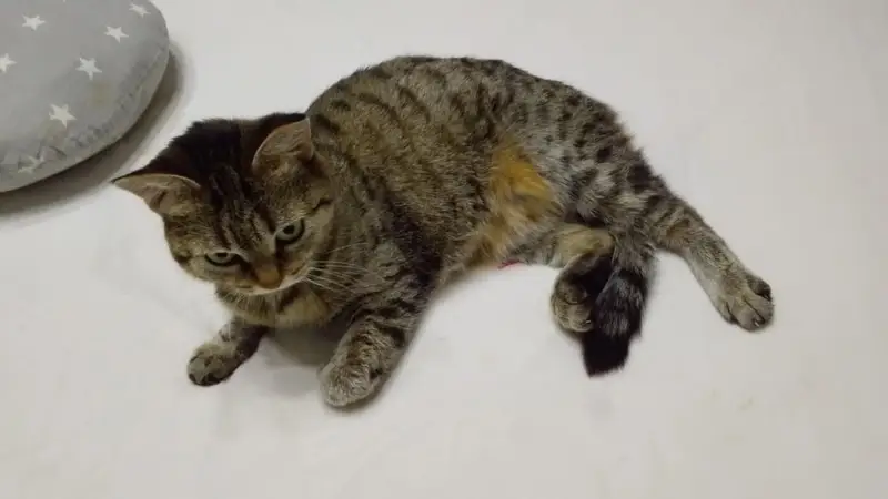На вид кошке 4-5 месяцев. Приучена у лотку и скорее всего домашняя. Просидела 4 дня на холоде по улице Цветочная 12а в посёлке Красное поле.